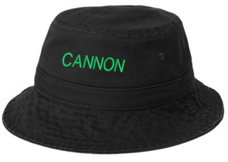 Black Port Authority bucket hat is garment washed, 100% cotton twill. Available in two sizes. Embroidered.