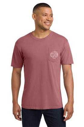 Comfort Colors brick POCKET t-shirts are 6.1 ounces, 100% cotton. Imprints on the front and back.