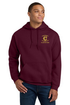 Gildan 8 oz. Heavy Blend hooded sweatshirts have a front pouch pocket. Made from 50/50 cotton/polyester. Choose from Class of 2026 and 2027 designs.