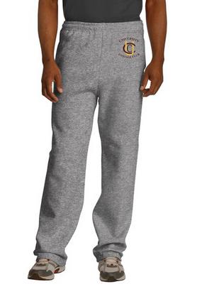 Oxford Jerzees sweatpants are 8 ounces, 50/50 cotton/polyester pill- resistant fleece. Features side pockets and open leg bottoms.